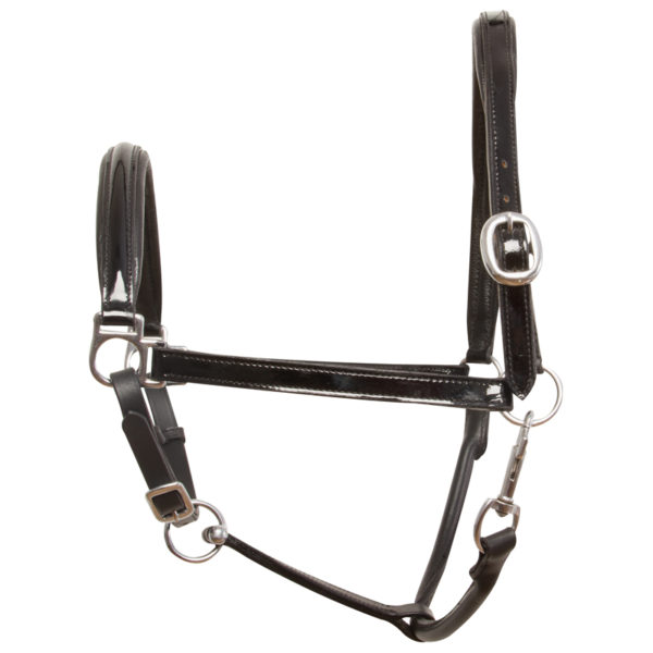 Halster uitgevoerd in lakleder met sluitingen van rvs