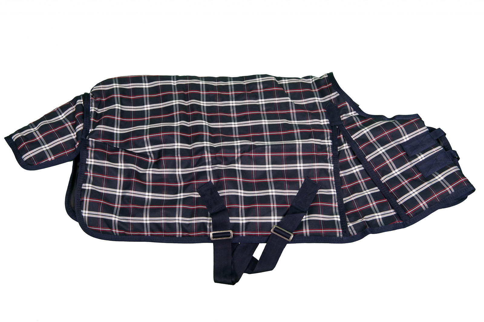QHP Staldeken Falabella Blauw Rood Wit is een mooie staldeken met 200 grams voering.